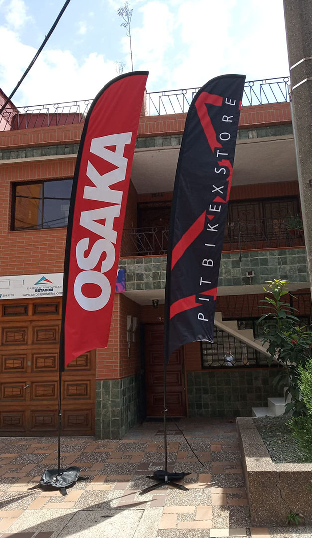 Atraiga miradas desde la distancia con banderas publicitarias coloridas y dinámicas. Ideales para tiendas y eventos, potencian cualquier espacio comercial con estilos creativos y materiales variados.